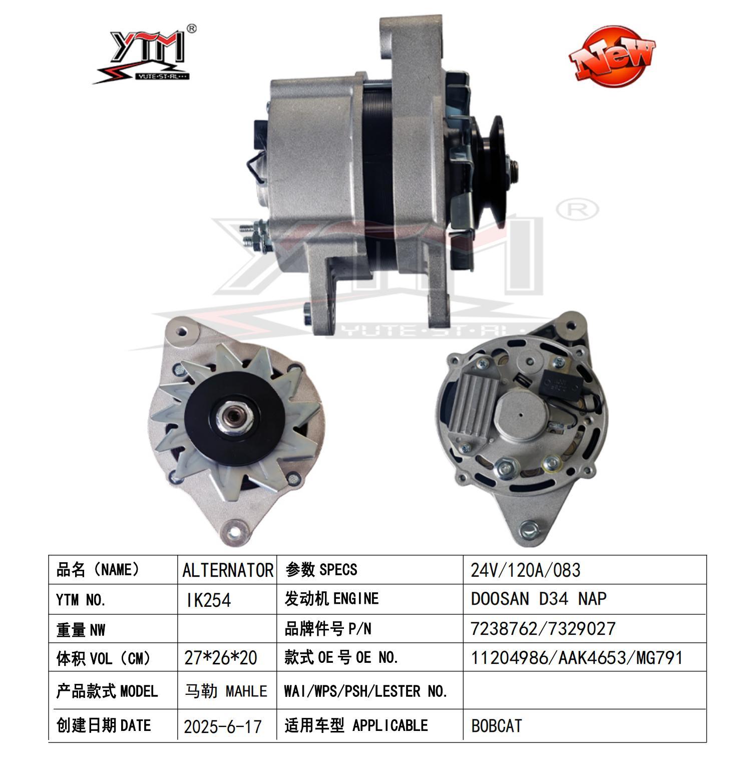 Премиум 12В 120А O83 Single Slot alternator for Bobcat Mahle model AAK4917/AAK4653/11.204.629/MG791