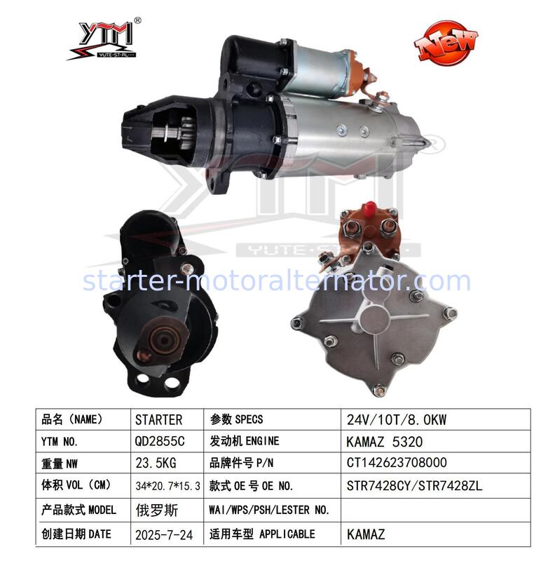 | Название продукта | 24V 10T 8.0KW Российский стартер для КАМАЗ 5320 53212 5410 5511 55102 Двигатель CT142623708000 STR7428CY STR7428ZL |