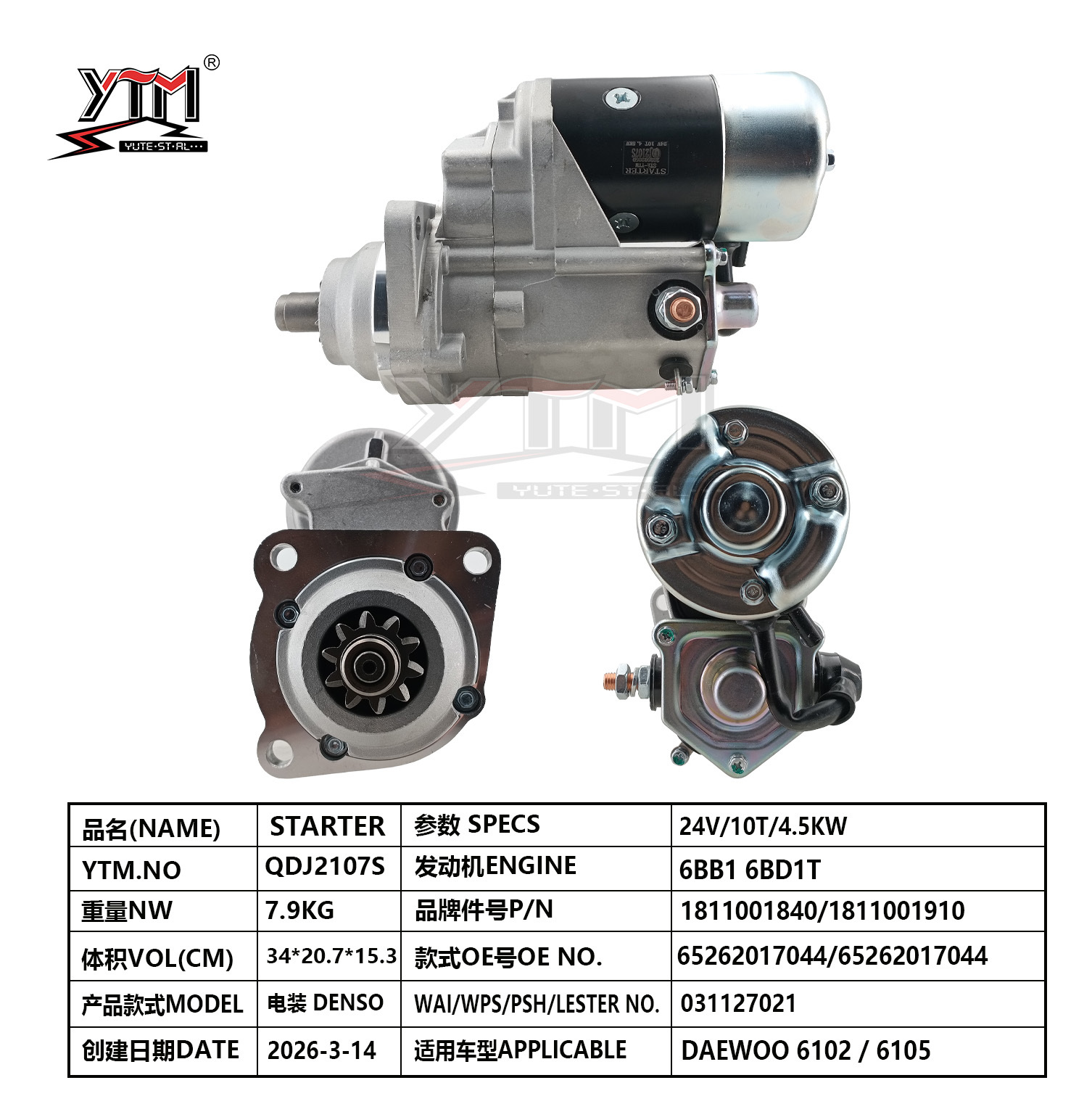 | Выделить: | 24V diesel engine starter motor,DAEWOO 6105 starter motor,DENSO compatible starter motor |